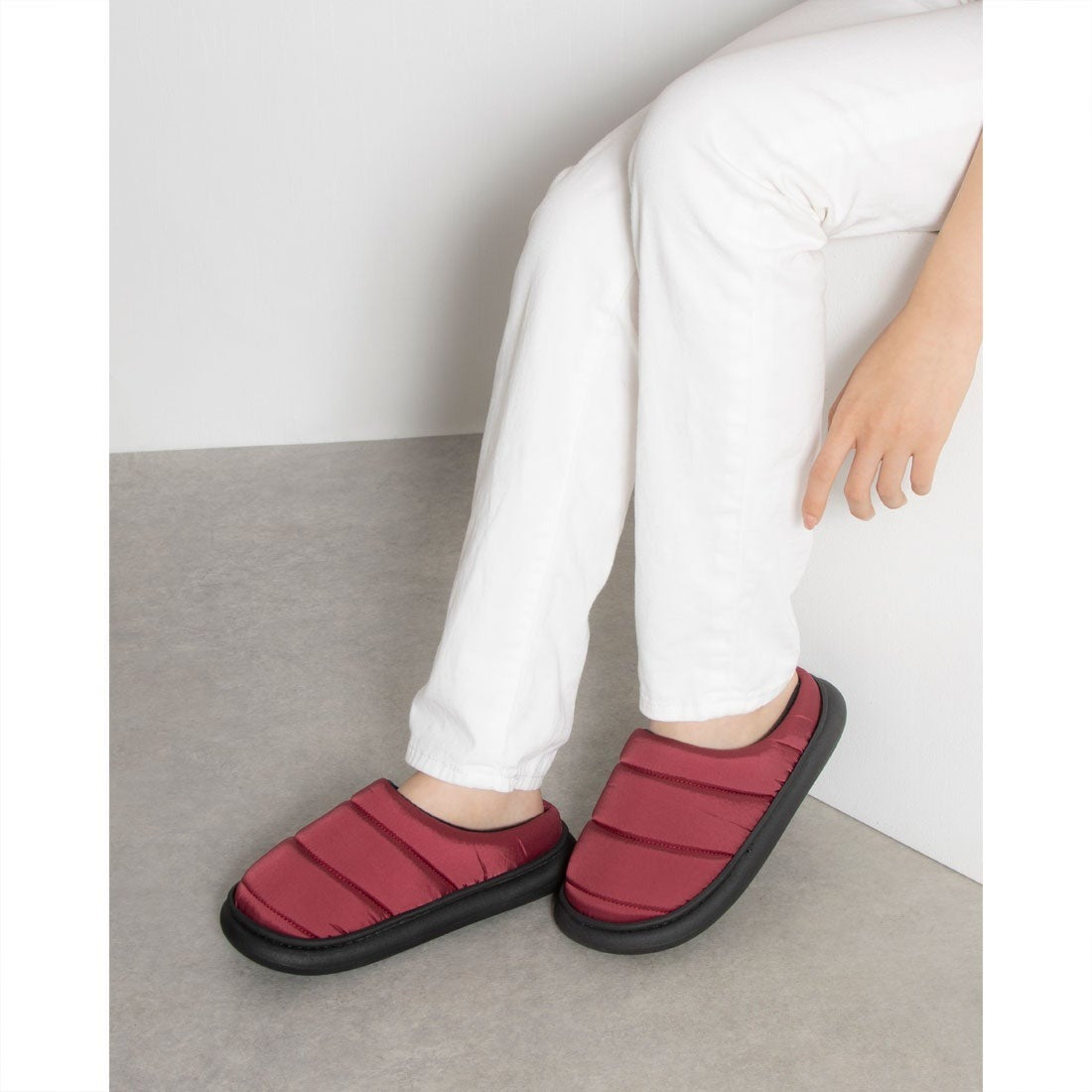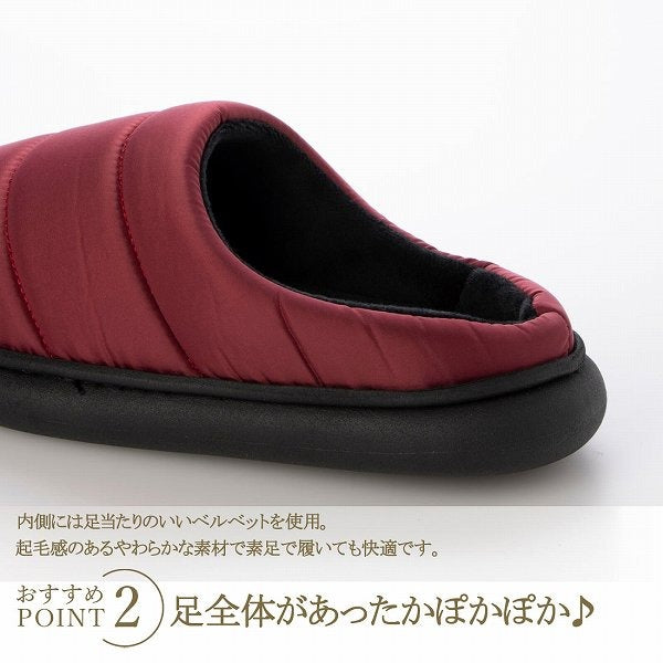 軽い素材を使用し、簡単に履いてただけるダウンスリッパ。