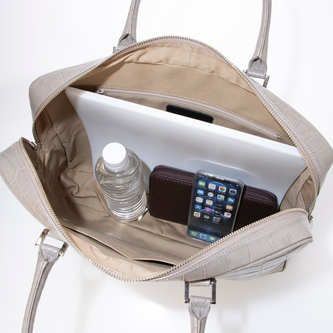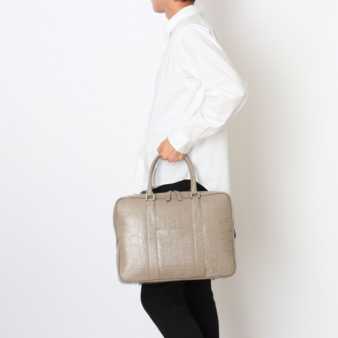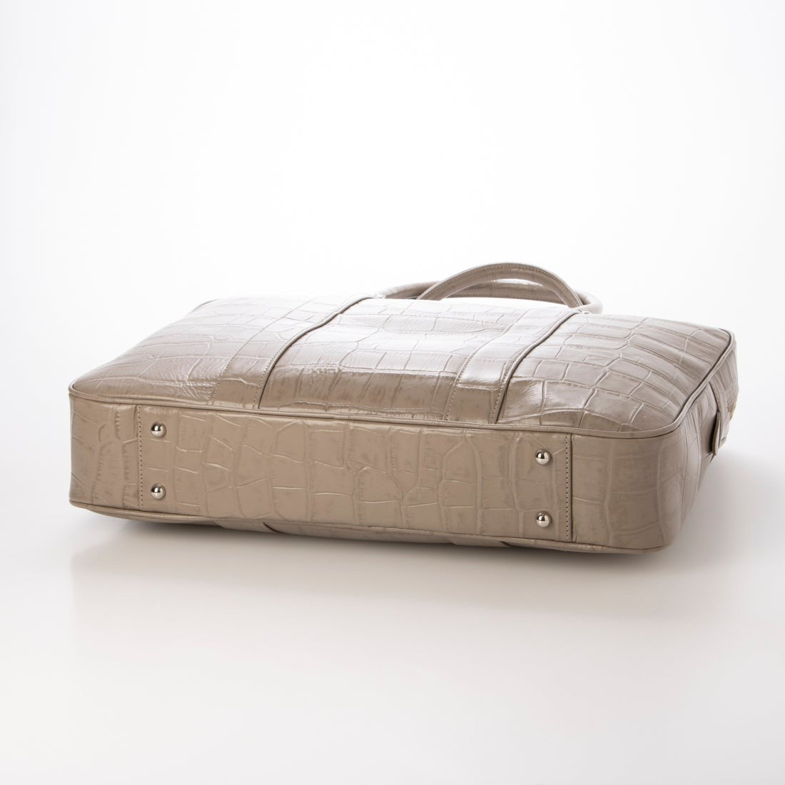 日本製 クロコ型押し 牛革 ブリーフバッグ トートバッグ メンズ レディース ビジネスバッグ ブリーフケース (36AC42 ベージュ)