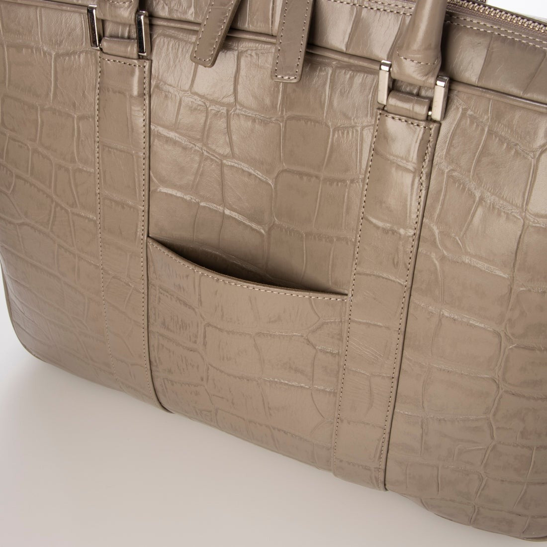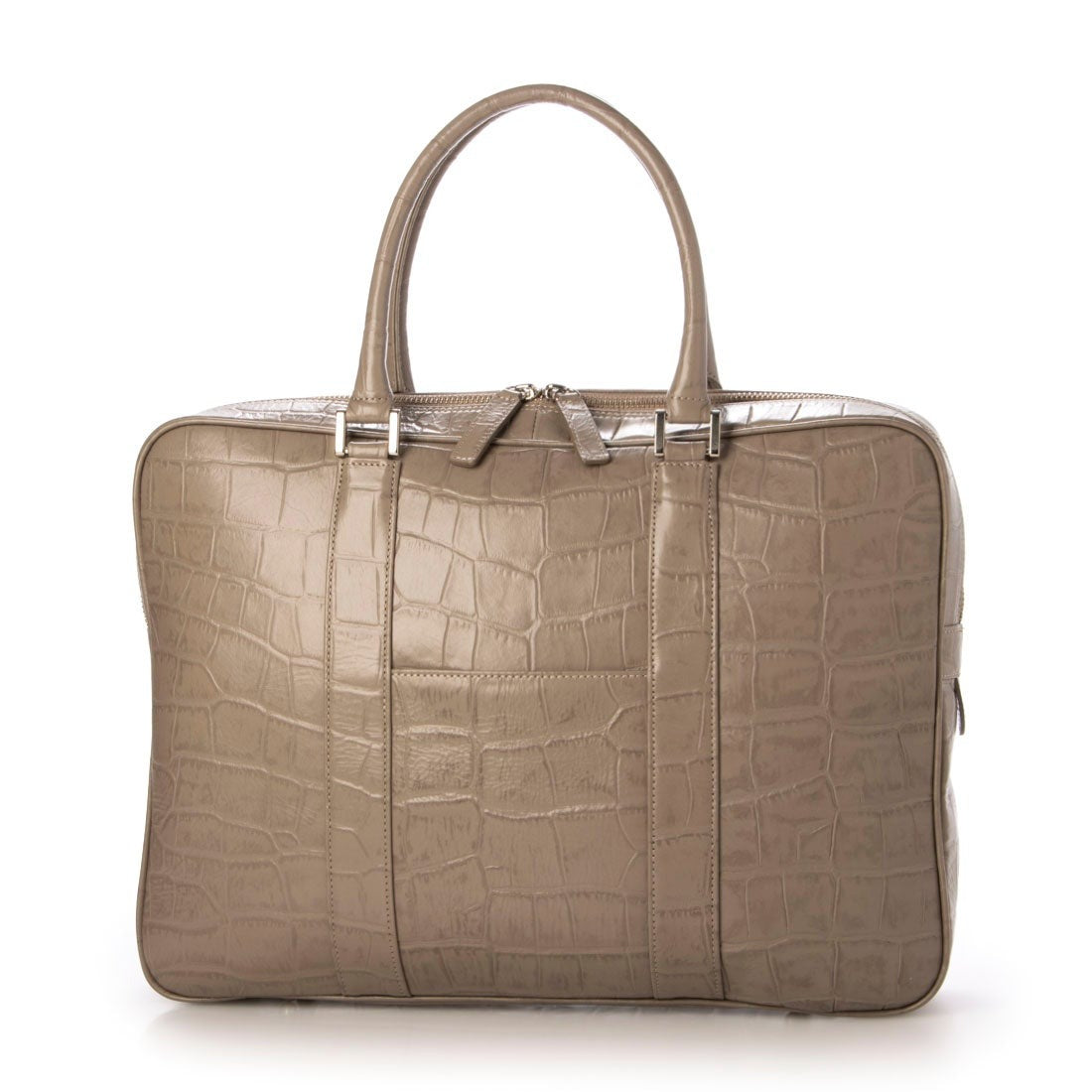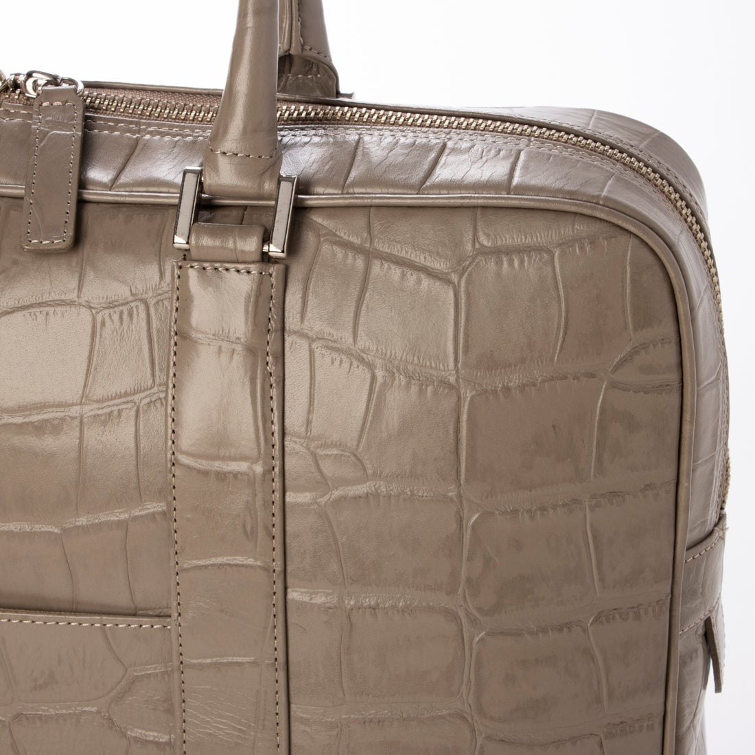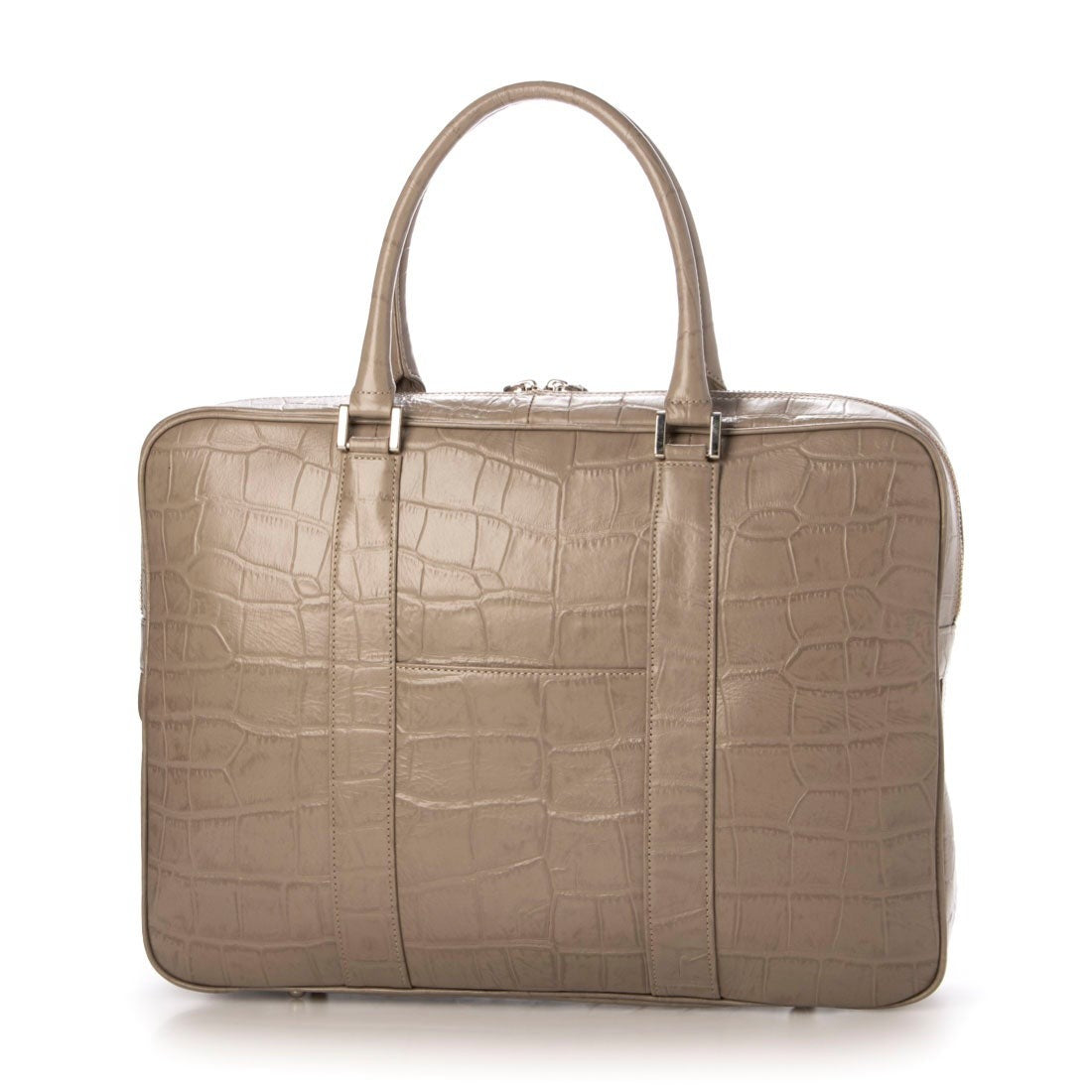 日本製 クロコ型押し 牛革 ブリーフバッグ トートバッグ メンズ レディース ビジネスバッグ ブリーフケース (36AC42 ベージュ)